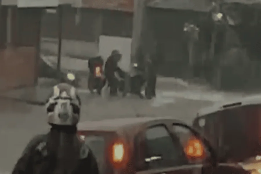 Caso ocorreu na quadra 805. Via ficou tomada pela água após a forte chuva desta segunda-feira (16/3) Um motociclista escapou por pouco de ser arrastado pela enxurrada durante o temporal que atingiu o Recanto das Emas (DF) no fim da tarde desta segunda-feira (16/3). O momento foi registrado por moradores na quadra 805 No vídeo (assista acima), é possível ver a força da água tomando conta da via e formando uma correnteza. Um