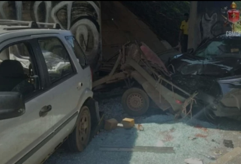 Colisão gravíssima envolveu cinco veículos perto da entrada da Marinha. Bombeiros tentaram reanimar uma das vítimas