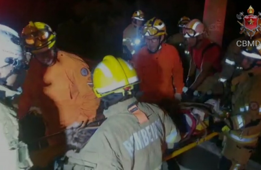 A vítima foi avaliada e transportada pelo CBMDF ao Hospital Brasília, para uma avaliação médica mais detalhada, apresentava apenas escoriações superficiais pelo corpo.