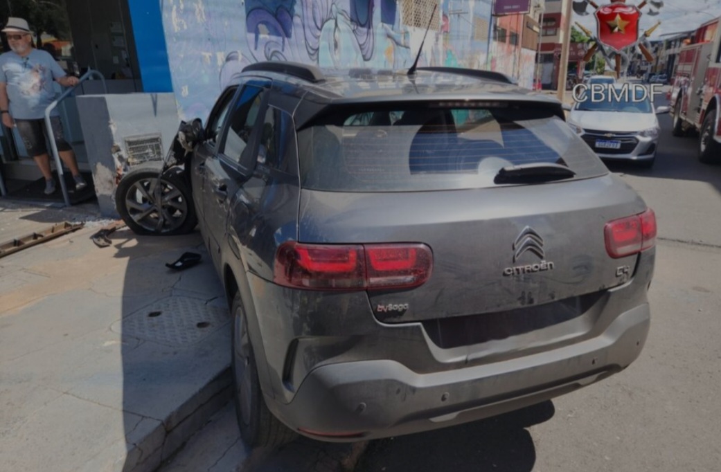 Mulher perde controle da direção e bate carro em poste no acesso à Ponte JK, no DF