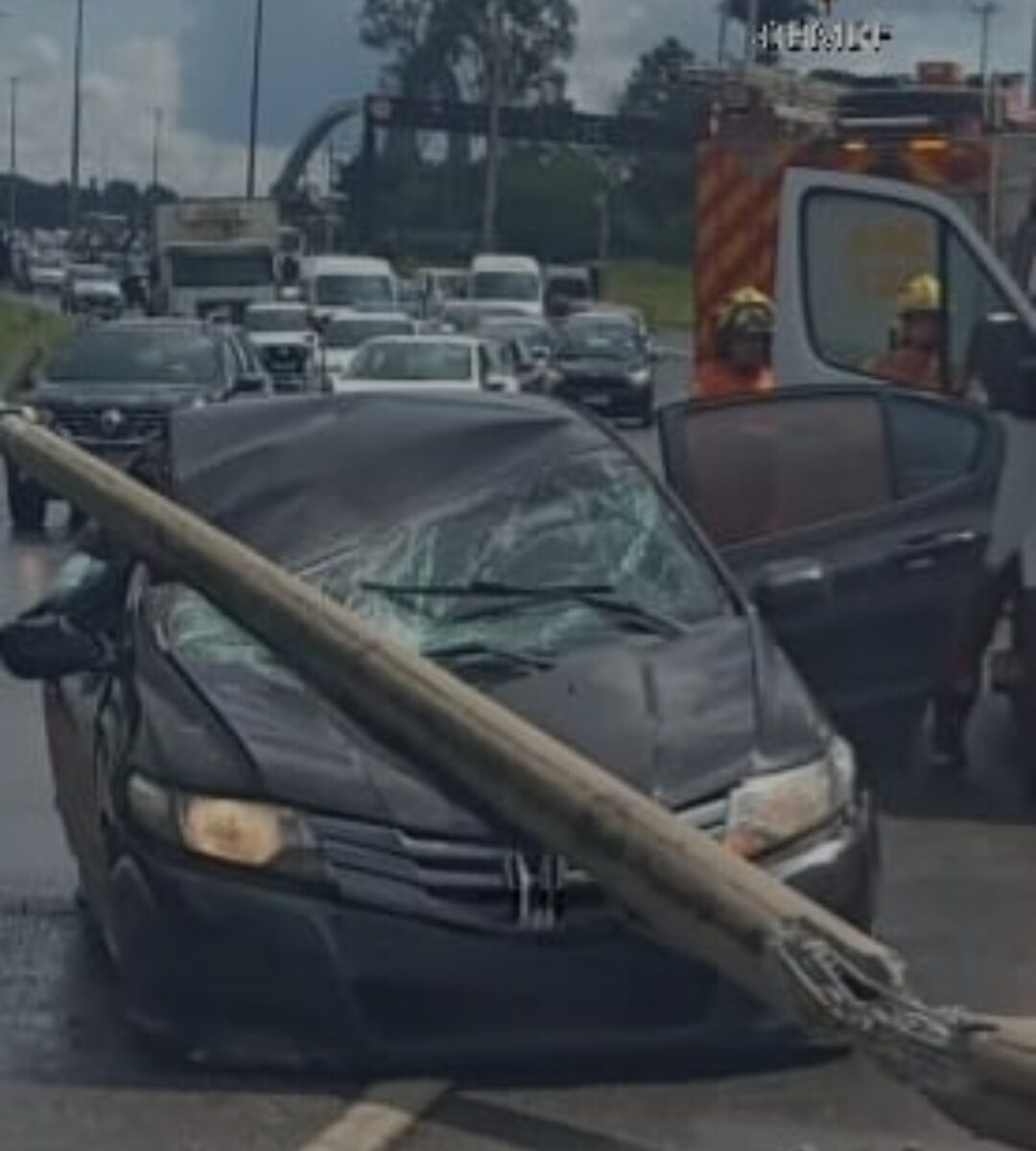 Segundo a corporação, quando os socorristas chegaram ao local da ocorrência, depararam-se com o poste de iluminação caído em cima do veículo, um Honda/City. Os bombeiros, porém, não souberam informar a dinâmica do acidente.