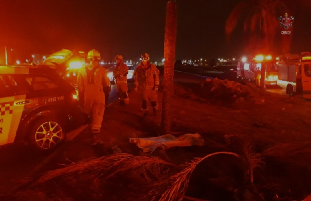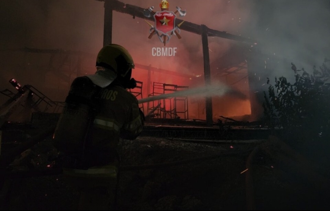 A Perícia de Incêndio do CBMDF foi acionada. A cena foi deixada aos cuidados do vigia do local.