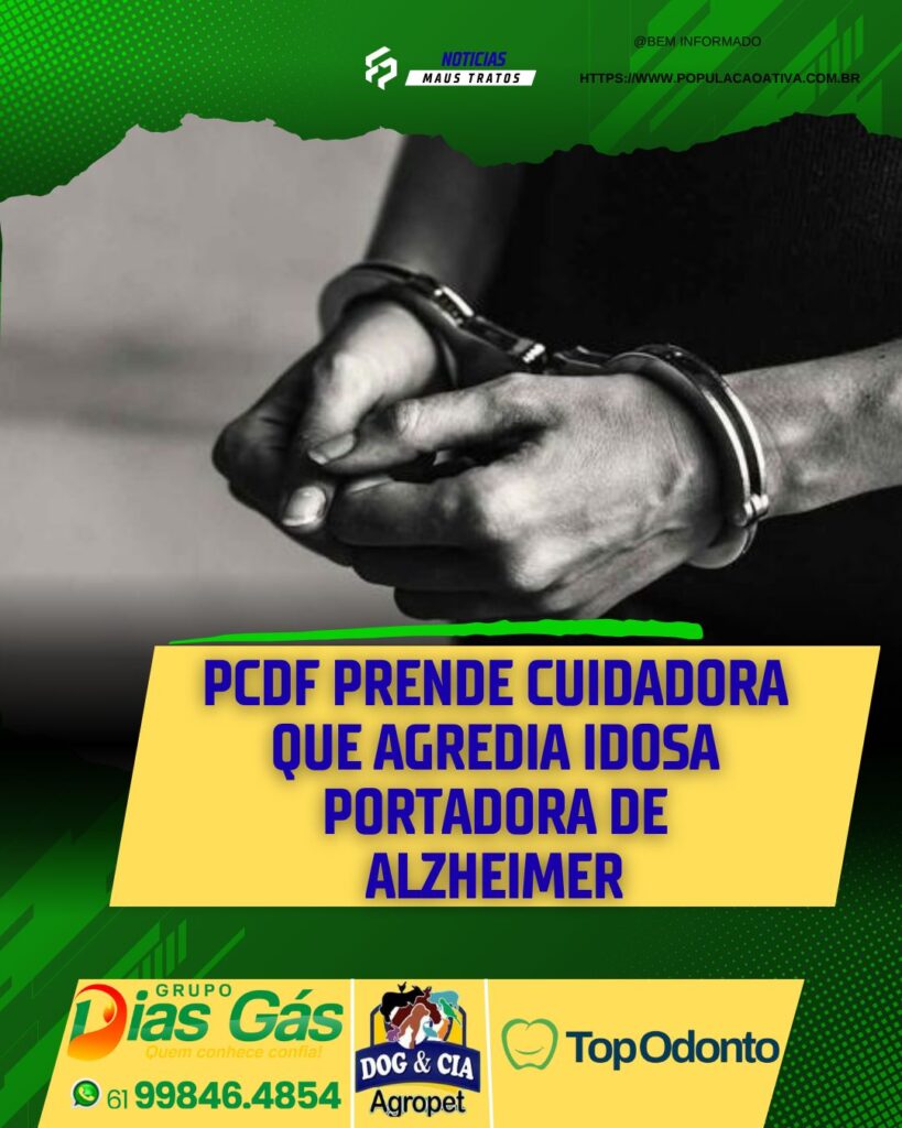 A Polícia Civil do Distrito Federal, em ação da 33ª DP (Santa Maria), na tarde desta quarta-feira (30/07), prendeu em flagrante uma cuidadora de 57 anos por maustratos contra pessoa idosa portadora de Alzheimer.
