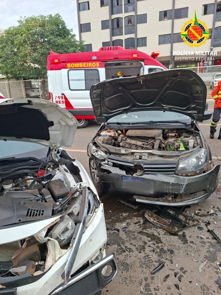Taguatinga/DF, QNL 7, na data e horário do atendimento registrados pela corporação, a Polícia Militar do Distrito Federal (PMDF) foi acionada para atender uma ocorrência de acidente de trânsito, após um veículo invadir a faixa contrária e colidir com outros dois automóveis.