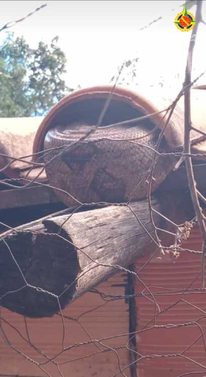 Chegando ao local, os policiais encontraram uma Jiboia. Como a cobra se encontrava em plenas condições de saúde, foi solta em seu habitat
